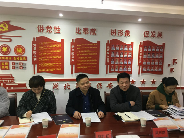 最后陈年初副会长作了讲话,他要求武汉市保安行业企业,要认真学习贯彻习近平新时代中国特色社会主义思想,进一步增强“四个意识”,提升政治站位,把组织优势转化为发展优势,把组织资源转化为发展资源,把组织活力转化为发展活力。要抓好非公企业党组织建设,充分发挥党组织战斗堡垒作用,创新规范非公企业党建活动。要通过党建工作的深入推进,提振全省保安协会会员单位干事创业的精气神,增强攻坚克难的信心,干出更好的业绩,为湖北“建成支点、走在前列”作出新贡献。