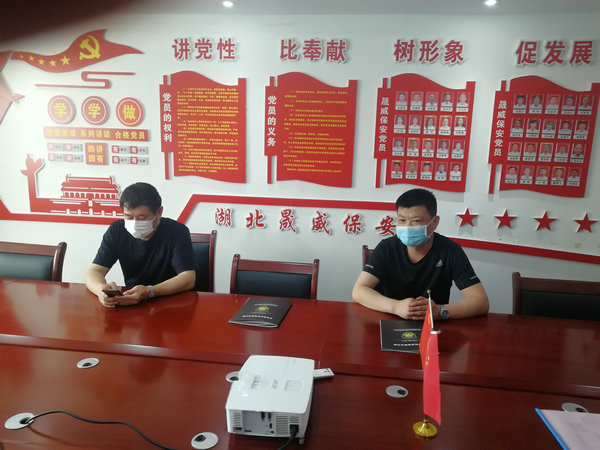 杜盛雄、徐光斌警官宣讲了目前湖北省保安员办证新规和网络审批流程,要求湖北晟威公司继续把讲政治放在突出位置,做好疫情防控工作,加大保安员入职审核,注重日常培训管理,为维护社会治安稳定再立新功,力争工作再上新台阶。