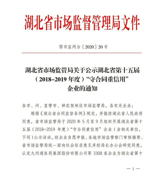 近日,湖北晟威保安服务有限公司,由于在业务开展中业绩突出,信用记录良好,没有违约行为,被湖北省市场监督管理局授予2018-2019年度守合同重信用企业。