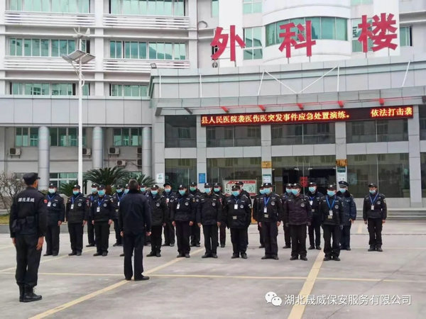 近日,湖北晟威集团旗下晟威保安兴山公司和兴山县人民医院,联合开展医院袭医伤医突发事件应急演练活动,晟威公司驻县医疗系统保安队员40余人参加了此次演练活动,活动取得圆满成功。