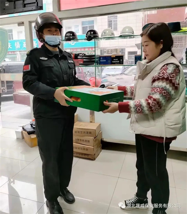 近日各分公司相关负责人,带领工会、后勤等部门负责人,深入各服务机关、学校、医院、企业、园区等项目点,慰问一线值班值守保安员,并为每个保安员送去昭晟纽荷尔橙子一件,代表晟威公司管理层向他们表达问候,并嘱咐他们年底做好安全防护,加强日常巡查,认真值班值守,注重精细化的服务,用实际行动为客户单位保驾护航,以优良作风做好2021年各项收尾工作。