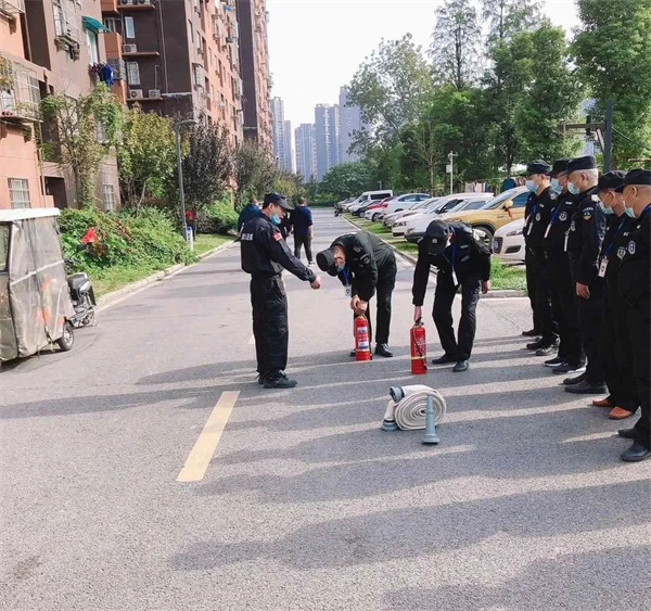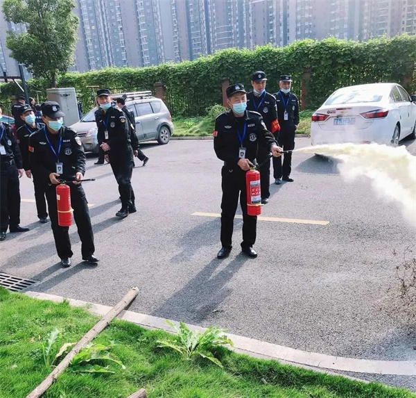 此次集中消防演练活动,分理论培训和实践操作两部分。培训过程中,专业人员讲解了有关火灾现场的应急处置方案,灭火器的使用原理以及相关的注意事项。并演练了灭火器的使用方法和消防水带连接等;在认真听讲及观摩后,保安员们亲自体验了现场灭火的过程,面对熊熊燃烧的火堆,保安员们表现得十分沉着,熟练地按照灭火的步骤和方法,将浓烟滚滚大火成功地迅速扑灭,做到了冷静沉着的面对突发火灾。