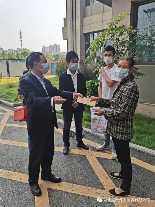 10月12日上午,受到湖北晟威公司党总支书记、董事长甘发勇委托,公司副总经理韩庆仪带领人事部、综合部负责人前往医院看望慰问受伤保安员,并送上慰问品和慰问金。在与队员家属交谈中,韩庆仪代表公司向受伤队员表示慰问,希望他安心养伤、配合治疗、早日康复。同时也叮嘱广大保安员在日常工作和生活中,要绷紧安全这根弦,更加注意个人安全防护,确保人身平安,更好的履职尽责。
