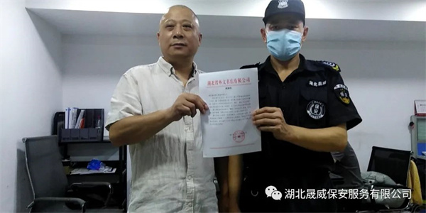 湖北晟威保安员黄红华受到省外文书店书面表扬