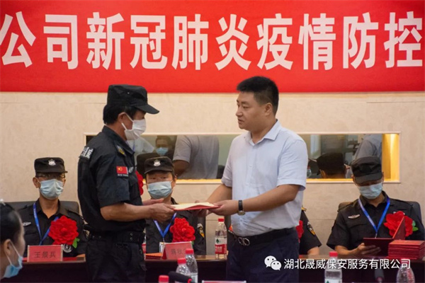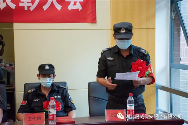 最后晟威党总支书记、董事长甘发勇讲话,他强调指出,新冠肺炎疫情发生以来,湖北晟威公司广大干部职工坚决贯彻习近平总书记重要指示,全面落实党中央决策部署,把维护人民群众生命安全作为最高使命,义无反顾冲在疫情防控第一线,安保人员不怕吃苦、冲锋在前,用最美的“逆行”向疫情宣战,用自己无私的奉献为全省疫情防疫作出了特殊贡献,涌现出一大批感人肺腑、催人奋进的先进典型代表,用自己的博大胸怀,展示了不平凡的力量,必将载入晟威公司发展史册。