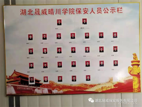 公司驻晴川学院保安员纷纷表示,将按照公司和客户单位要求,进一步提升业务能力,站好岗服好务,做好本职工作,为晴川学院保驾护航,为晟威公司发展多做贡献。