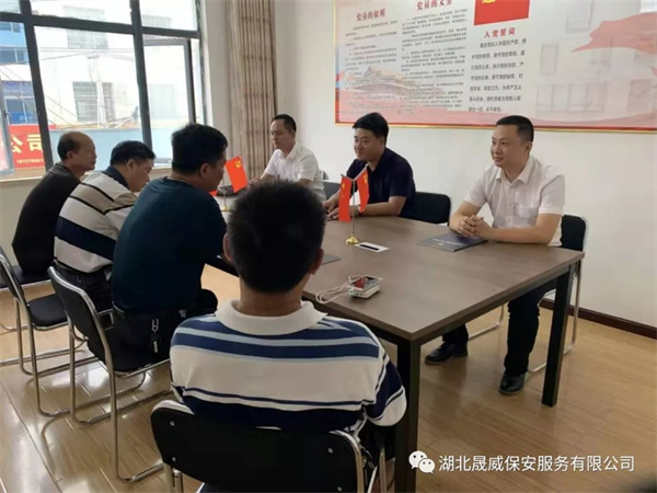 在随后的工作启动会上,湖北晟威公司党总支书记、董事长甘发勇检查了咸宁分公司党建和经营情况,他要求大家:要认真学习贯彻习近平新时代中国特色社会主义思想,围绕“不忘初心、牢记使命”活动要求,进一步提升政治站位,加强内部管理;要注重招聘引进专业人才,把党建和业务工作结合起来;要加强信息互联互通,实现资源共享,进一步把晟威公司做大做强,为建国70周年献礼,为咸宁市平安校园建设再立新功!
