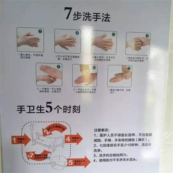 学习目的:七步洗手法是医务人员进行操作前的洗手方法,用七步洗手法清洁自己的手,清除手部污物和细菌,预防接触感染,减少传染病的传播。手与外界接触最为广泛,传播急性传染性疾病的机会就多,所以在医院工作的保安员也要像医护人员一样,用七步洗手法清洁自己的双手以减少传染病的传播。