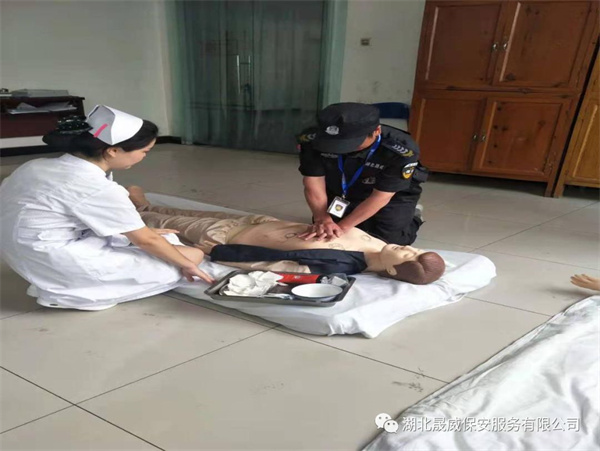 在医护人员的指导下,通过此次生动易学、内容丰富的现场演练活动,湖北晟威兴山保安公司保安员受益匪浅,在以后的工作和生活中,可以活学活用。通过这次培训演练,进一步提高了湖北晟威公司保安员的自保、急救意识和应对突发事件的能力,使以后配合医院的工作更加协调流畅,为更好地为人民服务打下了基础。