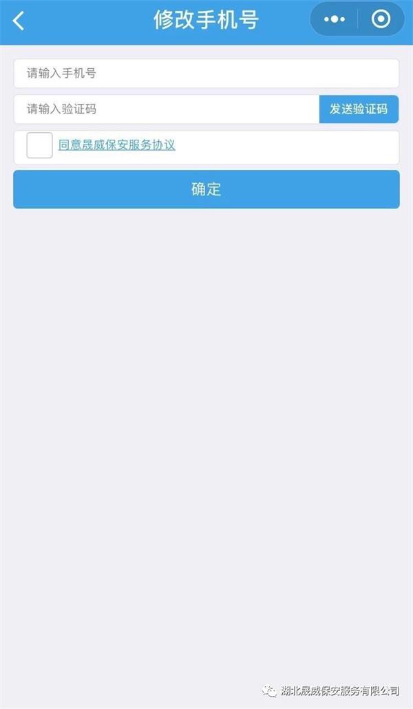 第四步:输入个人手机号,点击“发送验证码”获取验证短信,将收到短信中的验证码输入并勾选同意晟威安保服务协议后点击“确定”即完成注册