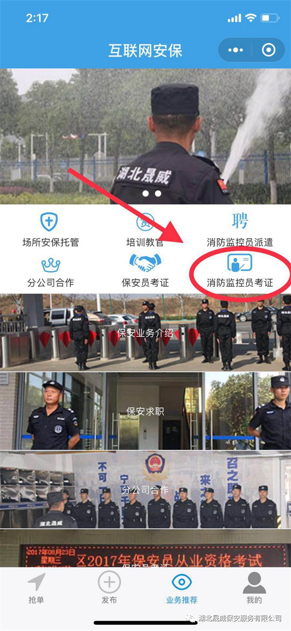 第五步:进入“业务推荐”菜单,点击“消防监控员考证”