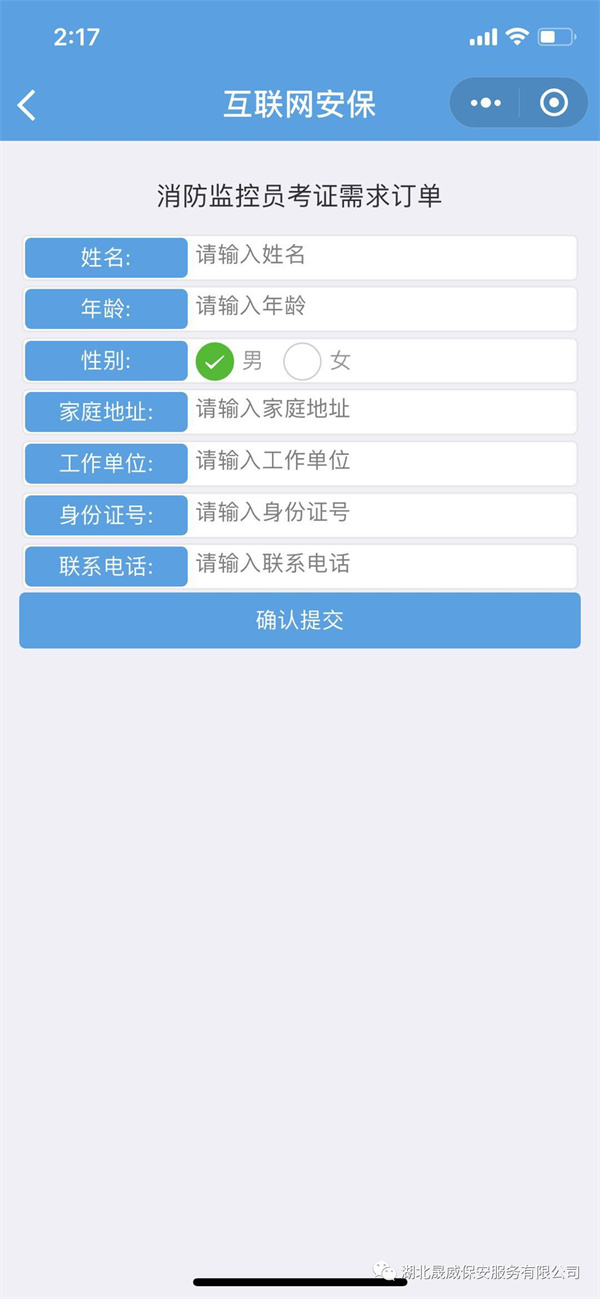 第六步:按要求填写姓名、年龄、性别、家庭住址、工作单位、身份证号、联系电话,填写完整再点击确认提交