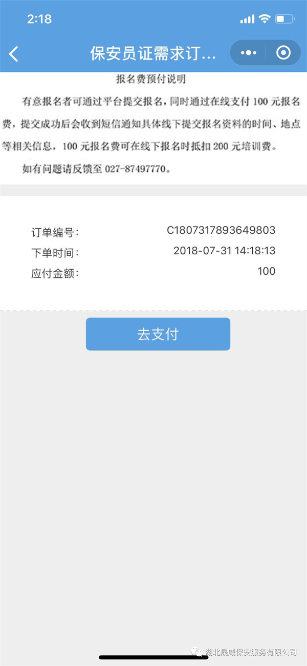 第七步:预先通过平台支付报名费100元