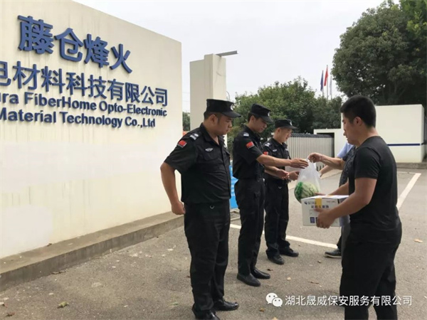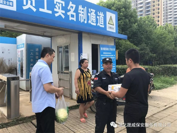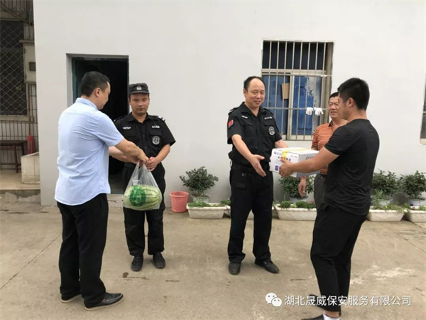为了体现“以人为本”的管理理念,做好防暑降温工作,切实保障一线保安队员在高温期间的安全与健康,公司工会组织开展了“夏季送清凉”活动。按照公司董事长甘发勇的部署,2018年7月3号上午,公司工会领导前往各项目点对一线队员进行慰问,送上了西瓜、矿泉水等防暑降温慰问品,也带去了公司领导对基层队员的关爱之情。慰问组对一线队员们不畏酷暑、坚守在岗的敬业精神表示敬意,并要求各项目分队认真落实各项防暑降温措施,积极开展高温天气安全隐患排查工作,加强安全知识教育,提高队员自我防范意识,保障一线队员的安全和健康。