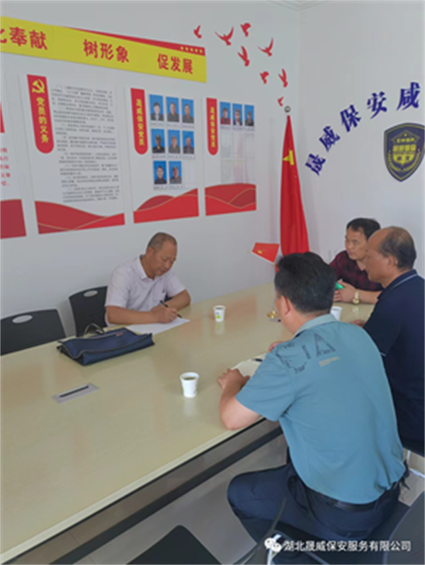 陈主任认真听取了李西成同志的汇报,对晟威咸宁分公司在市机关事务服务中心两年多的安保服务工作表示肯定,特别是2020年爆发疫情以来,安保队员能吃苦耐劳,公司不计较得失,超额完成安保服务任务,体现出了企业的担当精神。就公司目前遇到的困难深表关切,回去开会研究解决。建议公司今后要把握住发展方向,拓展业务定位要精准,特别在承接业务时要做好风险评估,尽量承接支付服务费有保障的单位和企业。希望公司规范管理,抓好队伍建设,业务稳健发展,树立晟威品牌。