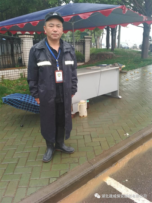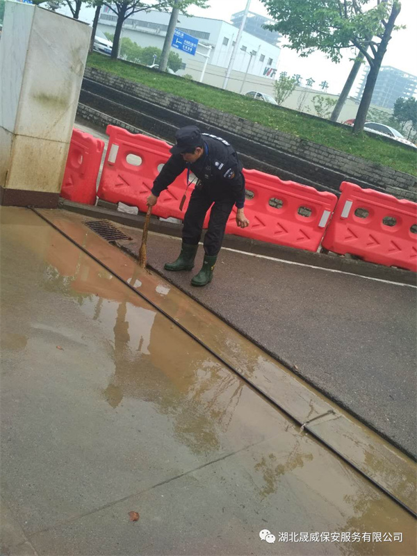 湖北晟威保安服务有限公司驻理工光科项目部的保安员,大雨也浇不灭他们保一方平安的热忱,坚持雨中执勤站岗;更是连续几小时不停歇的除泥浆冲洗马路,为了过往的人和车辆能走的安全、走的放心,他们弯下了自己的腰,手里握着的是晟威人的精神,而这背上扛的,是满满的责任心;