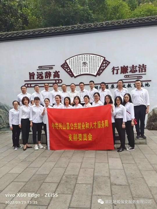 金秋送爽,时和年丰。9月23日,湖北晟威保安兴山公司党支部与兴山县就业局联合开展“喜迎二十大、建设清廉党支部”主题党日活动,到秭归县人力资源和社会保障局交流学习工作经验,室内学习和室外实践活动相结合,并组织全体党员参观了屈原祠,瞻仰了伟大爱国诗人屈原塑像,重温入党誓词。