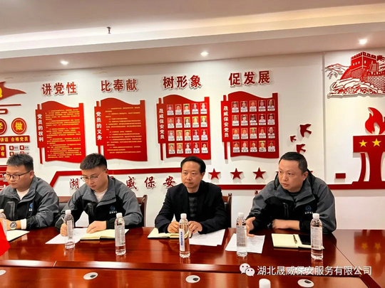 近日,湖北晟威集团旗下晟威保安武汉分公司在武汉市办公室党员活动中心,召开项目负责人运营工作推进会,并传达全国“两会”精神,学习习近平总书记系列讲话,听党话跟党走,以新的姿态谋划新的发展。集团公司党支部书记、副总经理韩庆仪,集团综合部经理、办公室主任周波,晟威保安武汉分公司经理乔德胜参加会议。