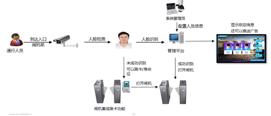 系统广泛适用于门禁、考勤、迎宾(VIP识别)、进出自定义控制等场景,通过一体机、分体式、利旧现有系统及硬件等灵活方式为客户提供智能化管理方案。具体应用场景举例如下: