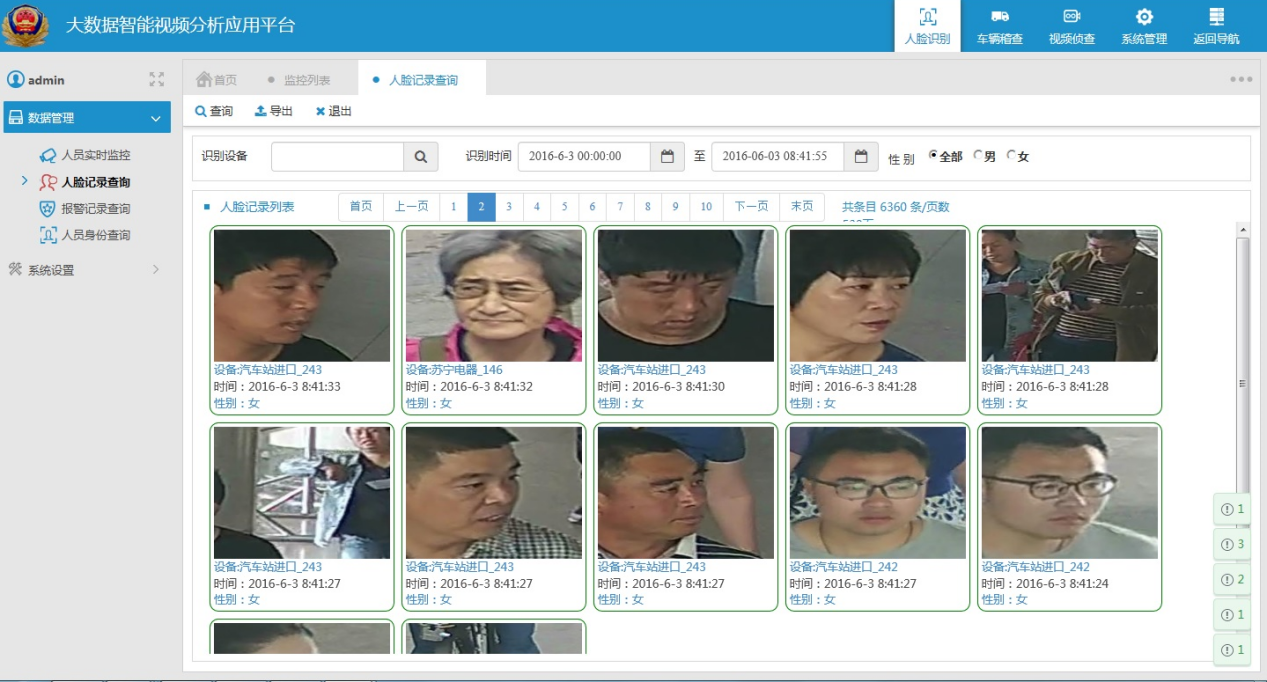 系统保留所有的抓拍和比对记录,为将来做大数据分析提供海量的数据来源。