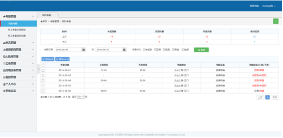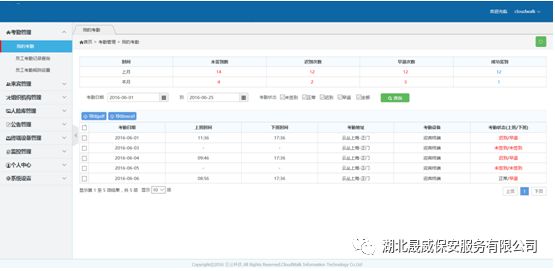 管理平台还提供完备的考勤统计报表进行考勤结果的统计和分析。