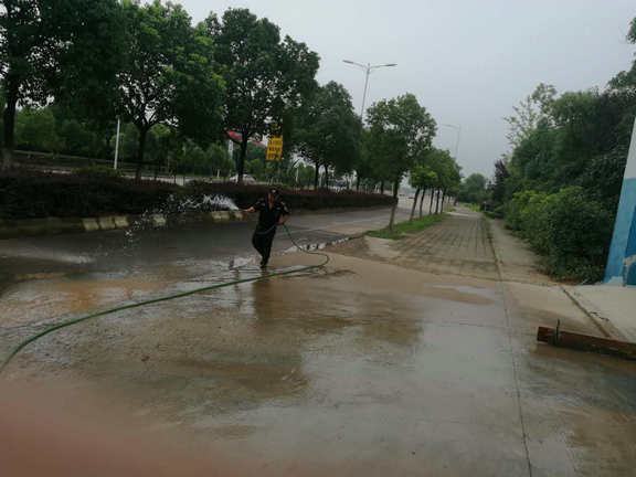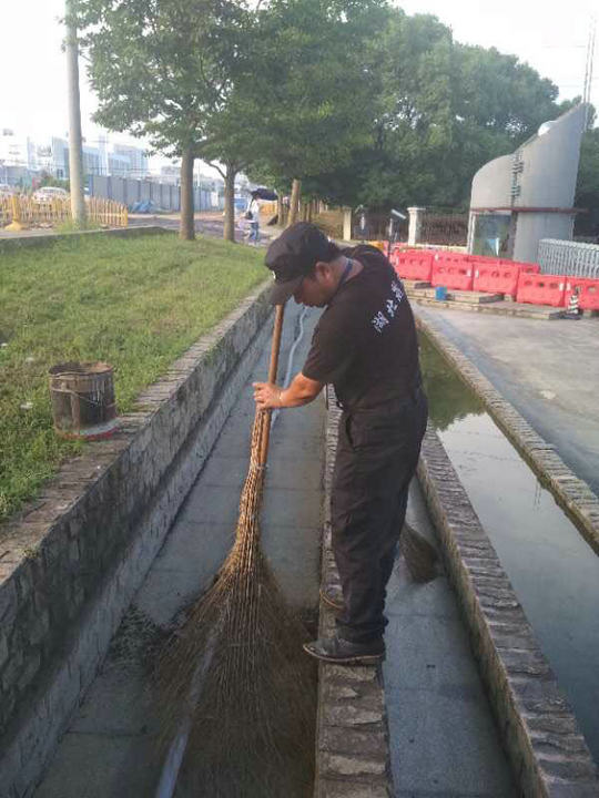 (保安员帮助客户清理水池)
